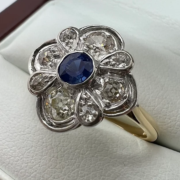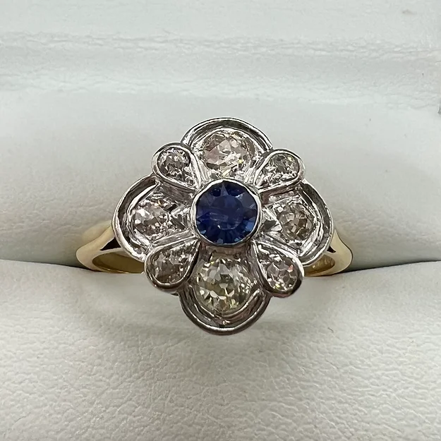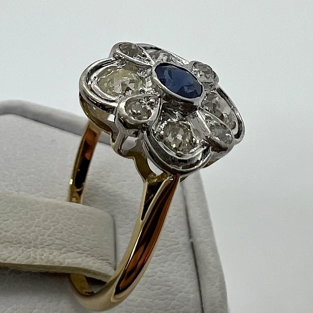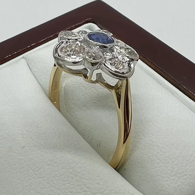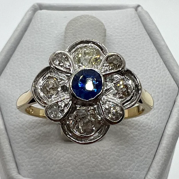 - Flower Shape Ring with a Blue Topaz centre surrounded by Diamonds