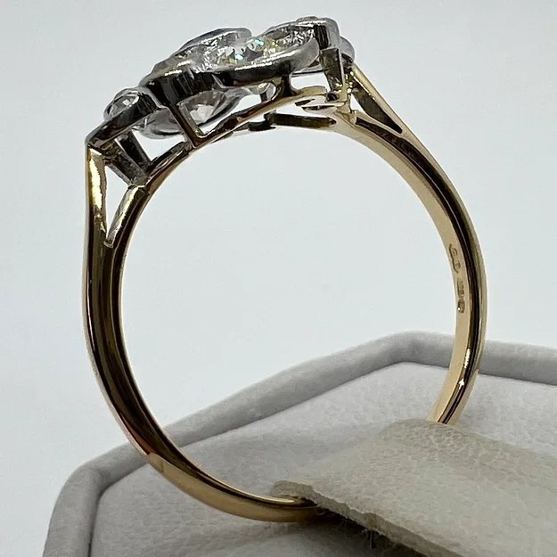 14ct Gold Blue Topaz and Diamond Flower Ring – Size P